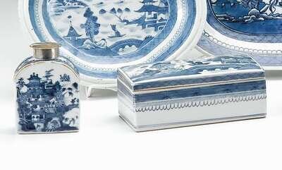 Chinese export porcelain Canton tea caddy and brush box