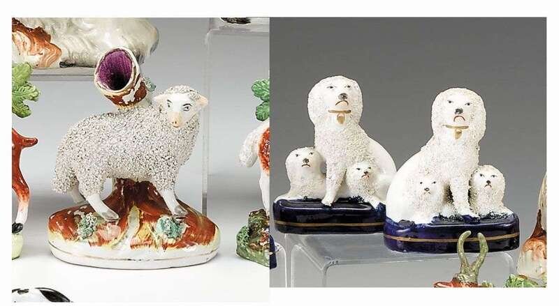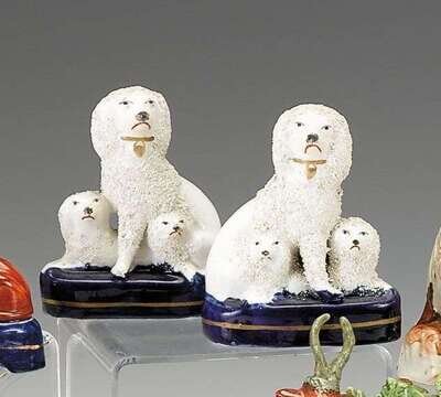 Pair of Staffordshire poodles with puppies Mid 19th century