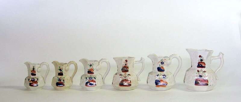 Group of six Gaudy Welsh "Forget-Me-Not" pattern pitchers England, 19th century