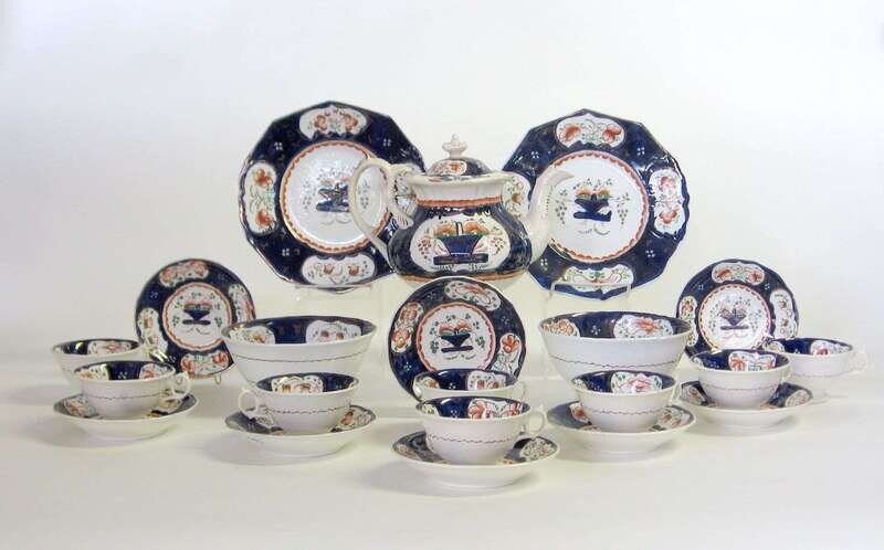 Gaudy Welsh "Flower Basket II" pattern partial tea service England, 19th century