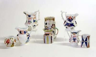 Decorated with "Anglesey" and other floral patterns, comprising two creamers and six pitchers (8).