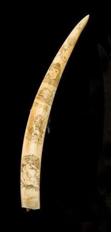 Scrimshaw walrus tusk 19th/early 20th century