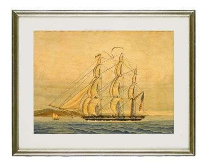 American School 19th century portrait of a three-masted ship flying the american flag