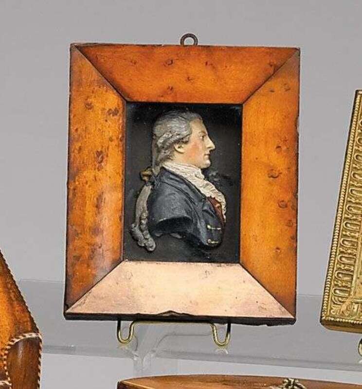 Subject identified on back, period maple frame, together with Ethel Stanwood Bolton, American Wax Portraits, 1929. Illustrated pg. 59.