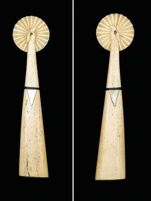 Whale bone, abolone and ebony jagging wheel 19th century