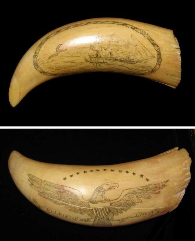 Scrimshaw-decorated whales tooth