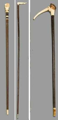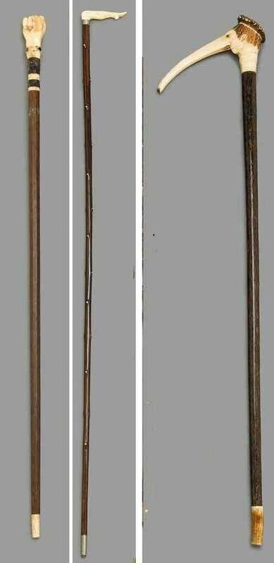 The first carved in the form of a fist, the second carved in a woman's leg, and the first in the form of a grotesque face.
