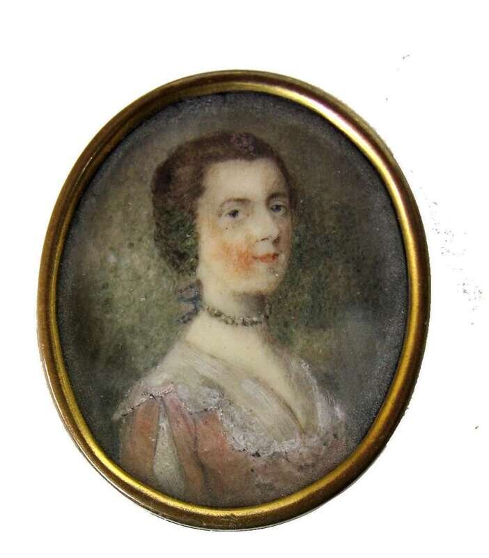 Unsigned, case engraved "Annabella Pye wife of William Southwell (uncle to Lord de Clifford) and mother of Harriett Bisshopp) oil on ivory, locket frame.