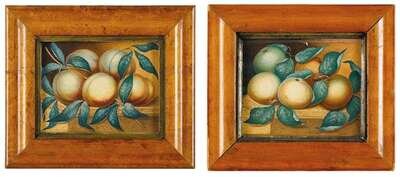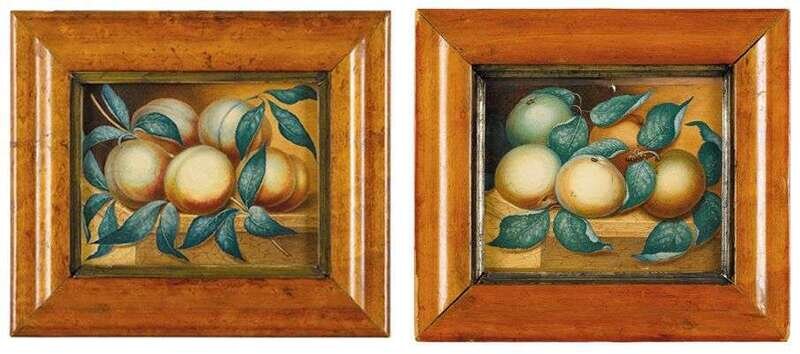 Unsigned, watercolor on card stock, figured maple frames. See Illustration pg. 51.