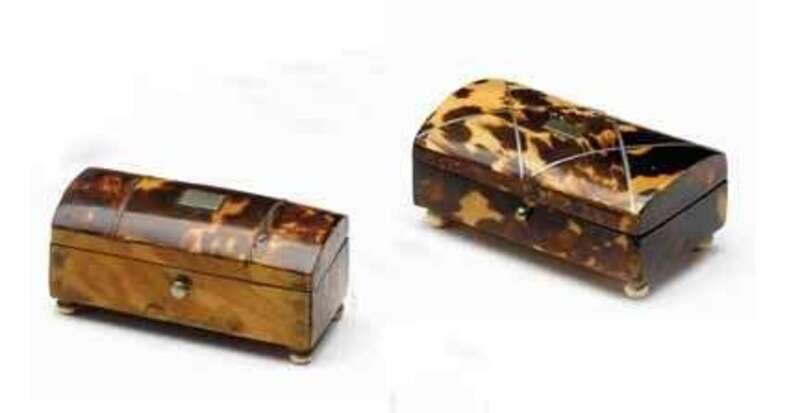 Each of rectangular form with domed tops with stringing, turned ivory feet. See Illustration pg. 55.