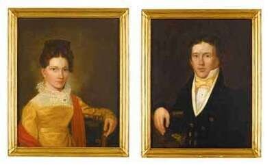American School 19th century pair of portraits: a young lady and gentleman