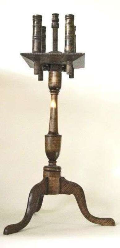 Reproduction lace maker's tiger maple candlestand 20th century