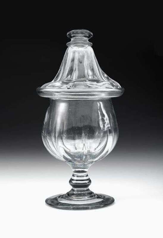 Blown uncolored glass covered sugar bowl 19th century