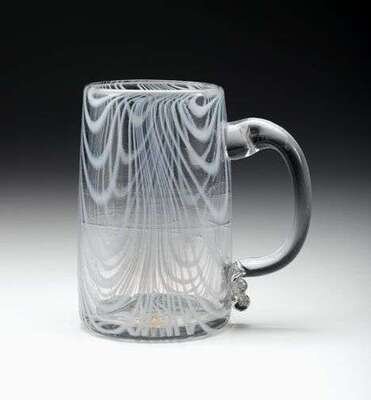 Clear blown glass mug with opalescent swirl, southern new jersey circa 1840