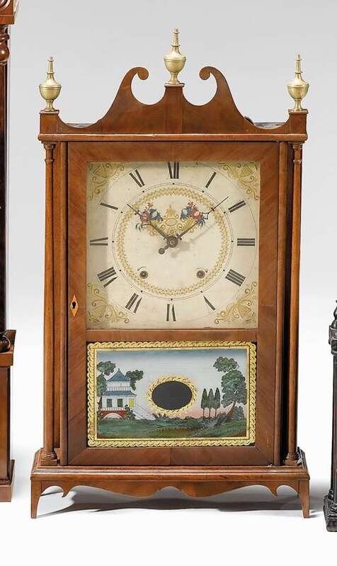 Federal mahogany pillar and scroll mantle clock eli & samuel terry, plymouth connecticut, early 19th century