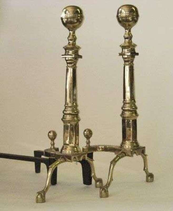 Belted ball finials on columnar and ring-turned supports on arched spurred legs ending in ball feet.