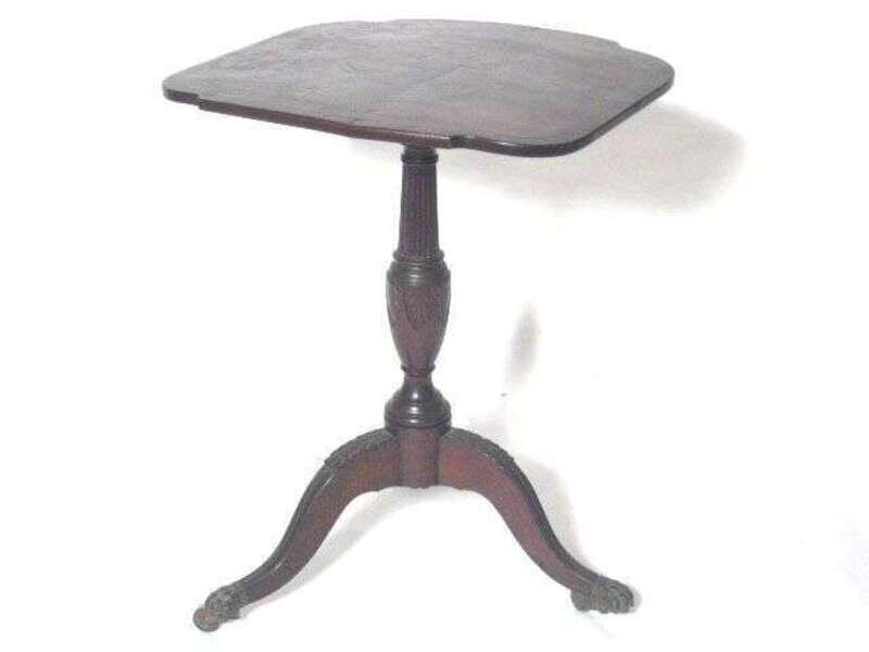 Shaped top with vasiform support, leaf and molded legs with brass claw feet raised on castors.