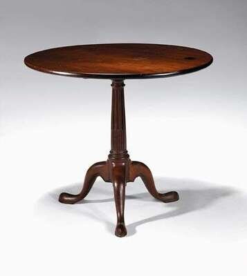 Circular top on tapering stop fluted support and cabriole legs ending in padded snake feet.