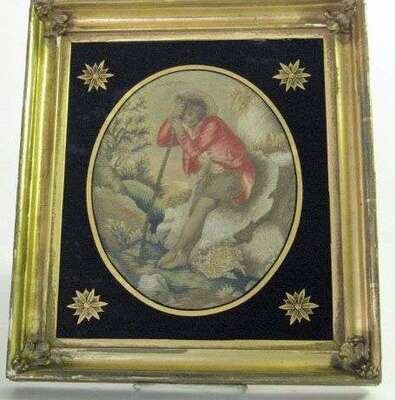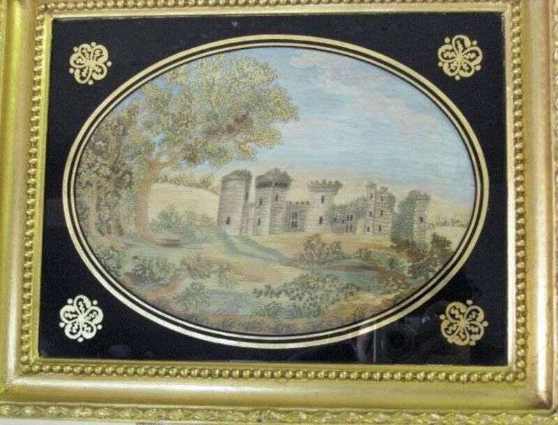 Two silk and watercolor on silk needlework pictures probably england, 19th century