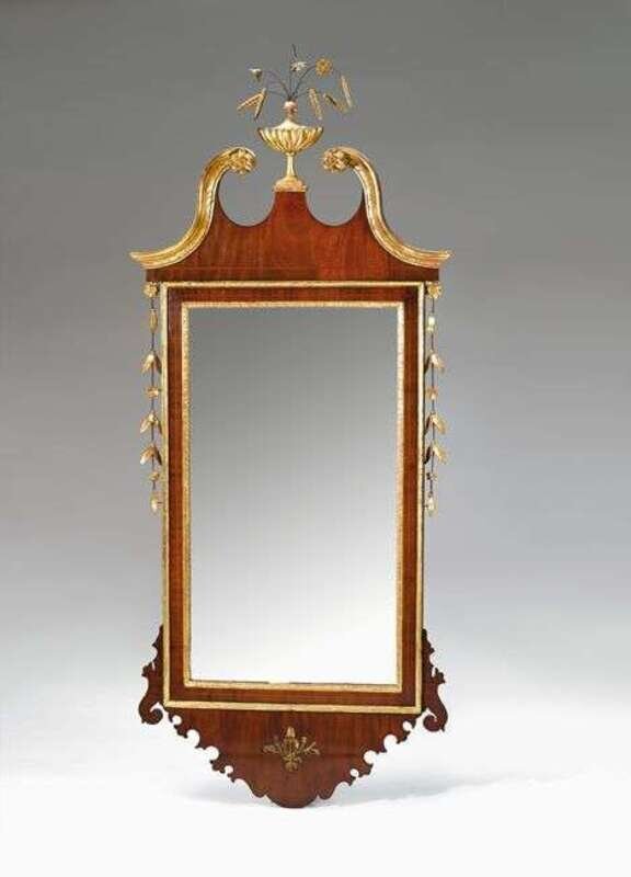Fine inlaid and giltwood looking glass new york, circa 1790