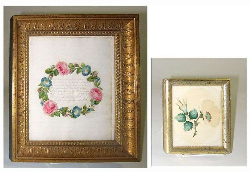 Calligraphic and watercolor sentimental vase, framed together with a theorem of floral sprig.