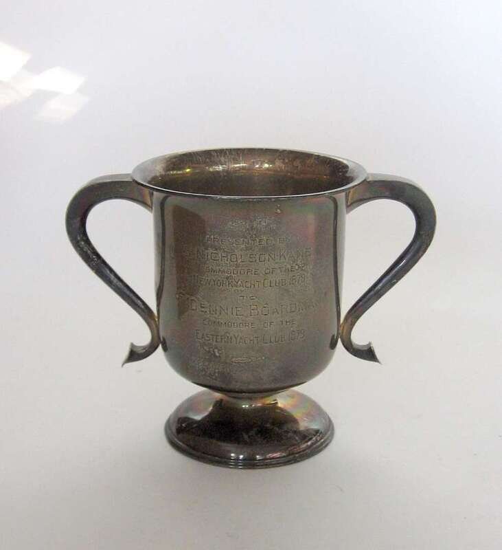 Loving cup form engraved "Presented by S. Nicholson Kane Commodor of the New York Yacht Club 1879 to T. Gennie Boardman Commodore of the Easter Yacht Club 1879."