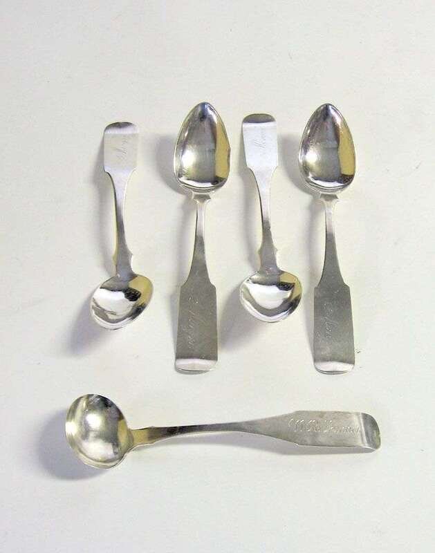 Four coin silver tablespoons and a sauce ladle john adams alexandria, virginia ( 1796-1848)