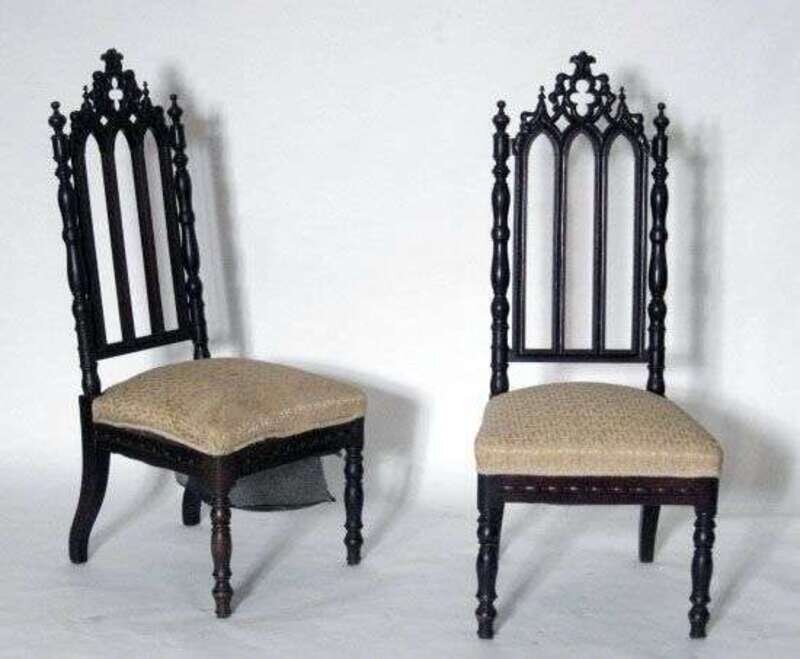 Pair of Gothic-revival side chairs. mid-19th century