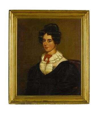 American School 19th century portrait of a lady with a red bow