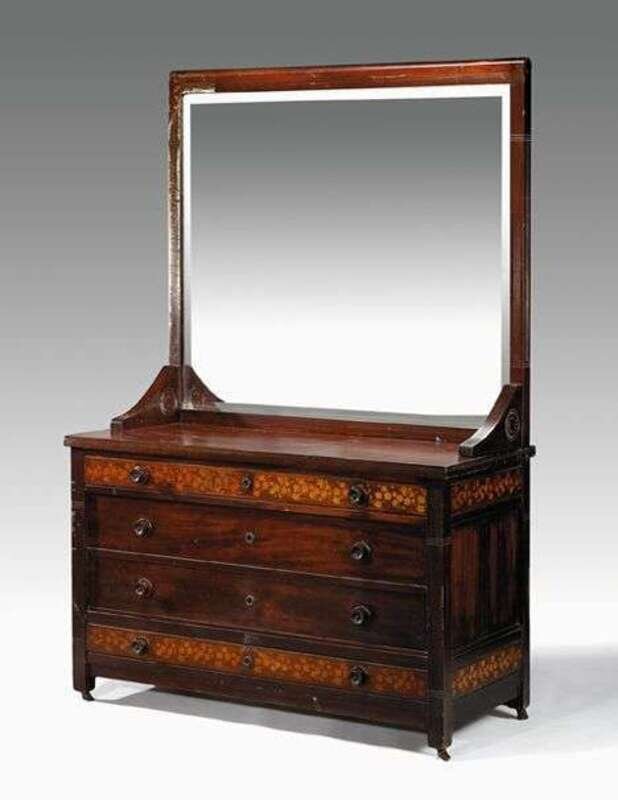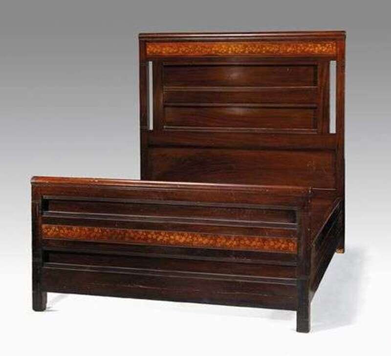 Suite of inlaid mahogany Aesthetic Movement bedroom suite herder style, new york circa 1880