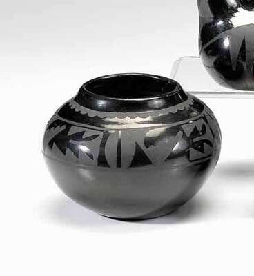 Santa Ildefonso blackware jar signed "santata and adam" circa 1955
