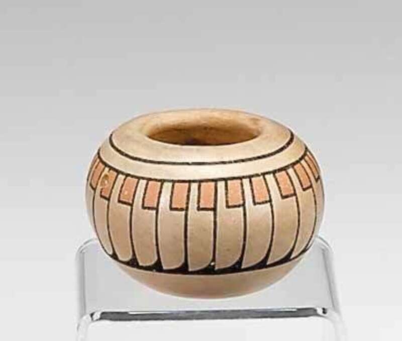 San ildefonso polychrome pottery seed jar signed " blue corn san ildefonso pueblo"