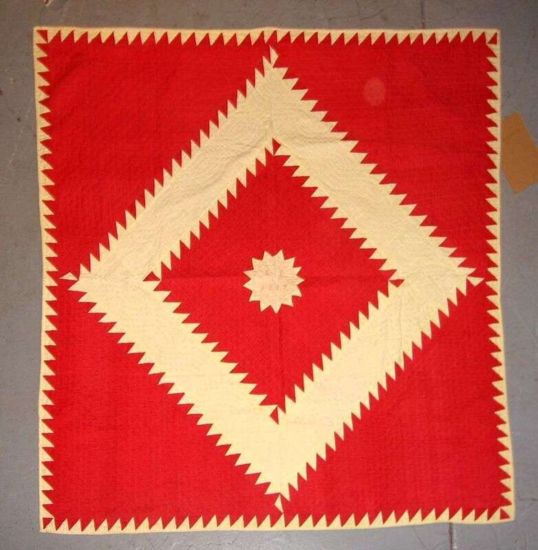 The sawtooth-edged diamond within a sawtooth border, heightened with diamond and cable quilting.