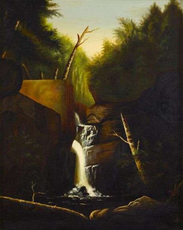 American school 19th century new hampshire waterfall