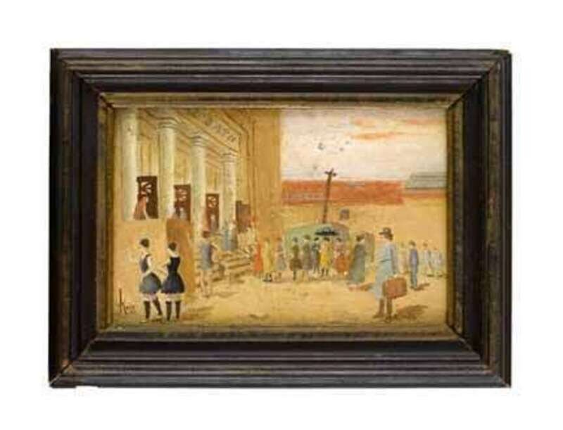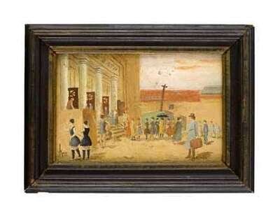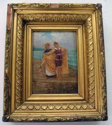 American School 20th century two small paintings: bath house and portrait of a swimmer