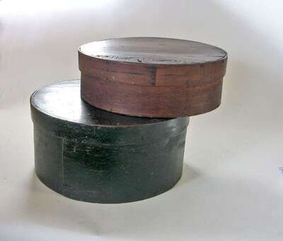 With straight laps together with a pantry box with fitted top with straight lap and scalloped lap to base.