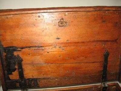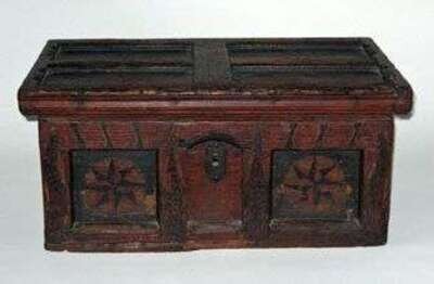 Painted and decorated pine chest continental, 19th century