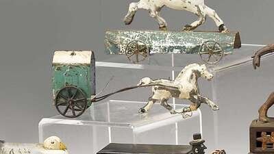 Painted tinware horse drawn carriage toy althoff bergman, 19th century
