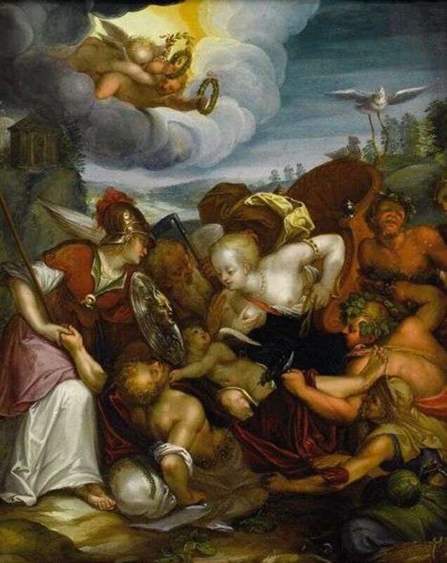 SCHOOL OF PRAGUE (CIRCA 1600) "THE DEATH OF AENEAS, KILLED DURING A BATTLE AGAINST THE RITULI: VENUS SPRINKLES AND ANOINTS AENEAS' BODY WITH PERFUME AND AMBROSIA"