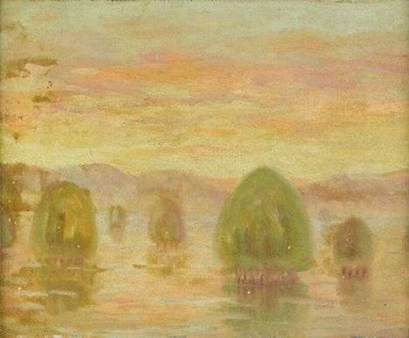 ARTHUR WESLEY DOW (AMERICAN 1857-1922) "HAYSTACKS"