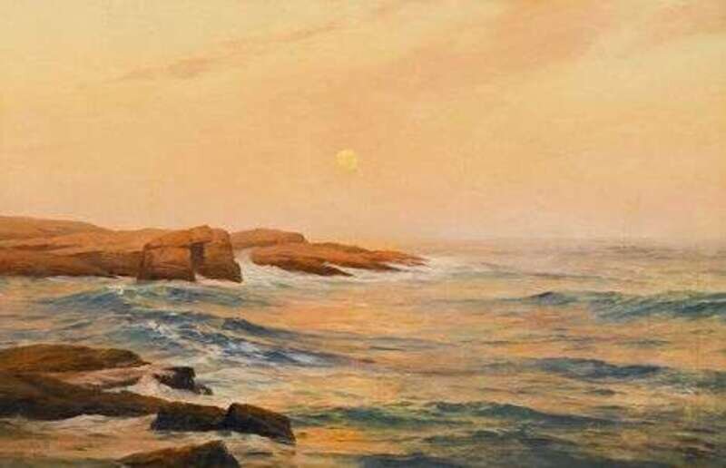 WARREN W. SHEPPARD (AMERICAN 1858-1937) SUNSET OVER THE SHORE