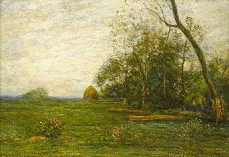 JOHN FRANCIS MURPHY (AMERICAN 1853-1921) LANDSCAPE WITH HAYSTACK