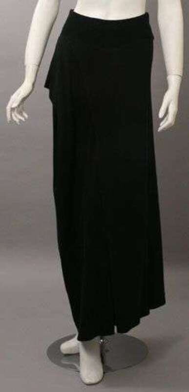 Wide elastic waist with asymmetrical draping. Labeled "Issey Miyake," size medium.