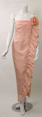 Bill Blass pink strapless evening gown 1980s-90s