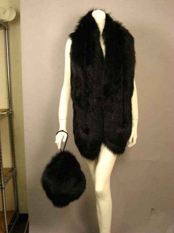 Long black fox stole and muff 1960s-70s