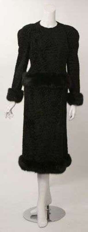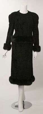 Leon Vissot black broadtail skirt suit 1970s