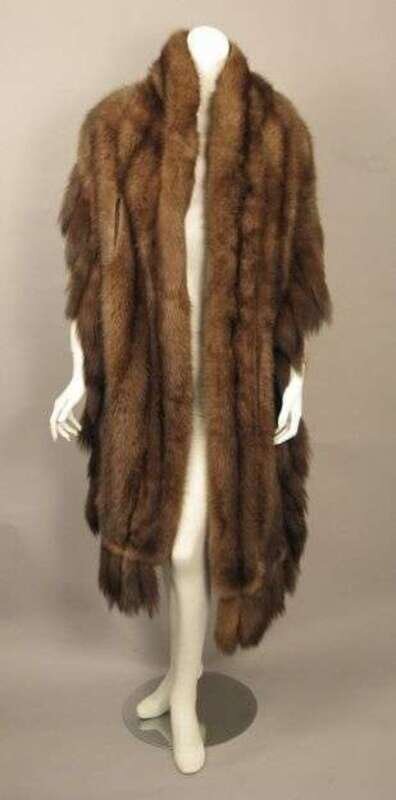 Custom made, with three rows of fine golden sable skins spaced with silk chiffon and trimmed on three sides with dangling "tails." Labeled "Maximilian New York" with custom order tag, verso.