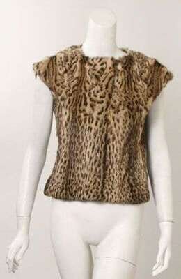 Fine spotted fur cap-sleeved vest with hidden closures and round neckline. Unlabeled.