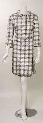 Givenchy couture white and navy silk tunic dress 1960s