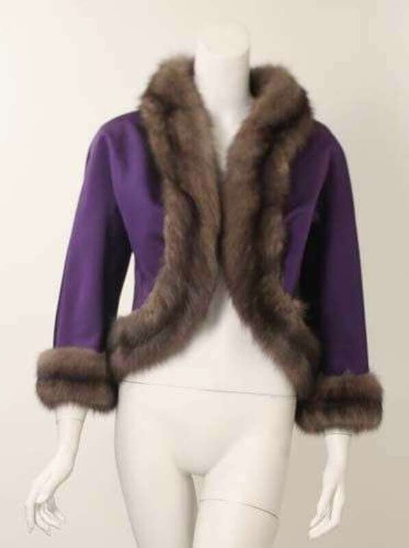 Guy LaRoche haute couture violet satin sable-trimmed jacket 1960s-70s